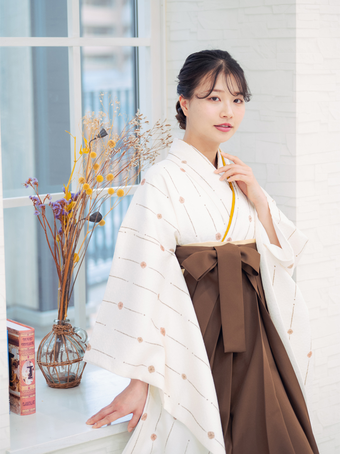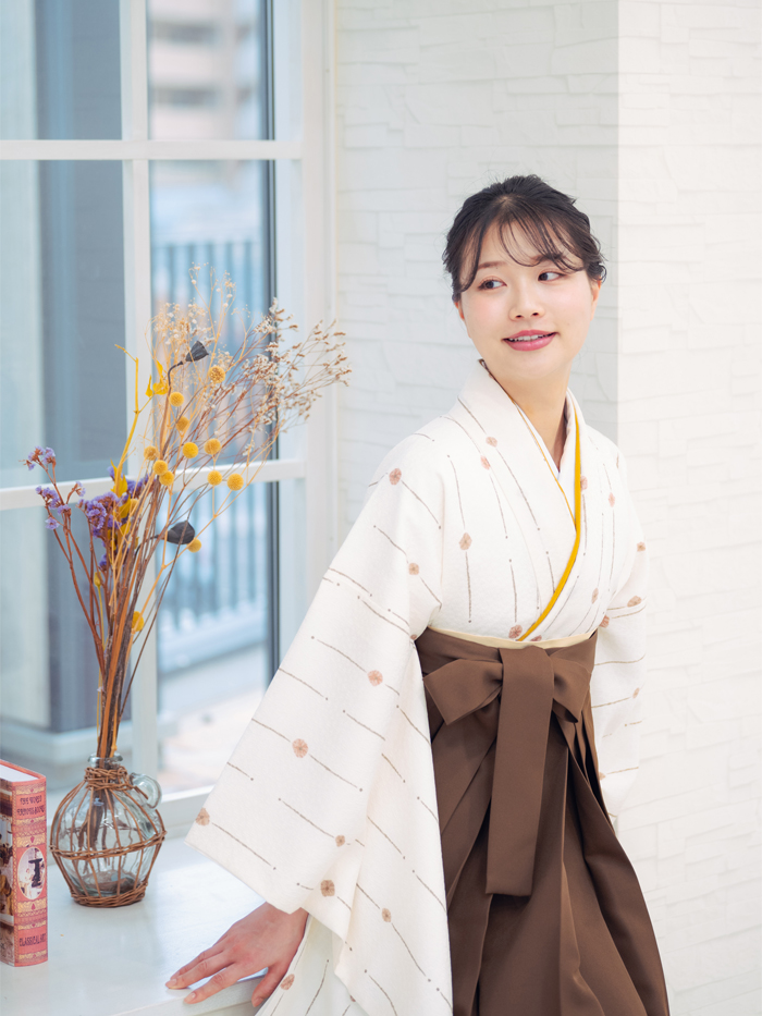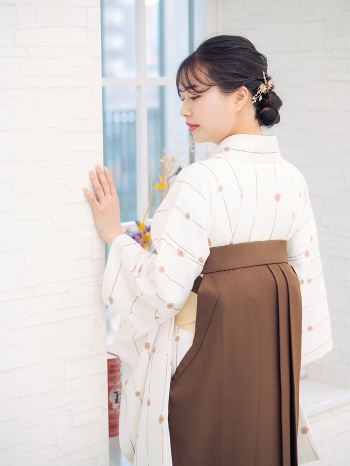 控えめな柄と色合いが、卒業式という特別な日にも程よい華やかさを添えてくれます。