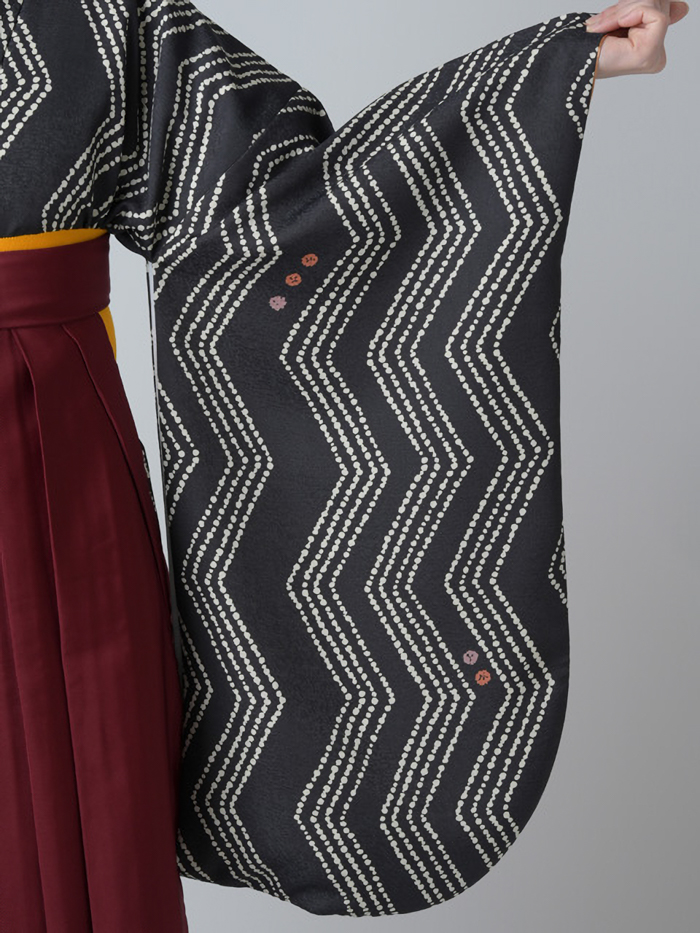 【二尺袖&袴レンタル】稲妻文様 黒+黒無地袴