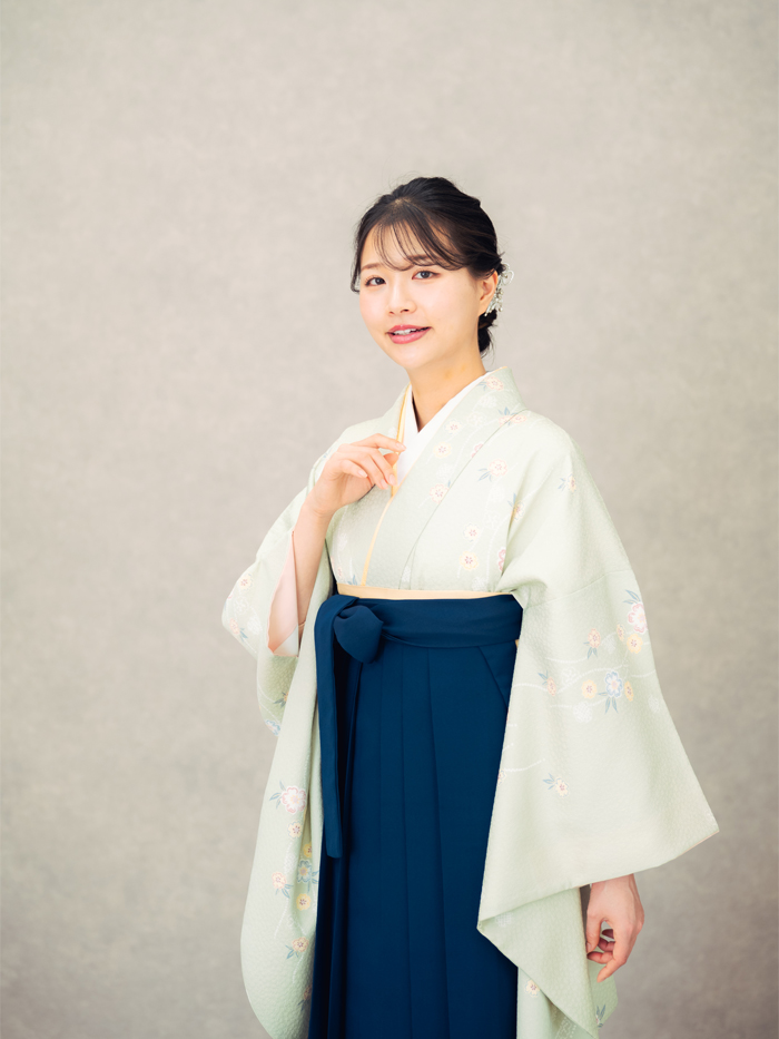 新コーデ 【二尺袖&袴レンタル】華絞り 緑+紺無地袴
