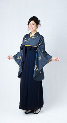 第四位:【50代の先生に人気の袴】紺 雪月花に飛び+紺無地袴